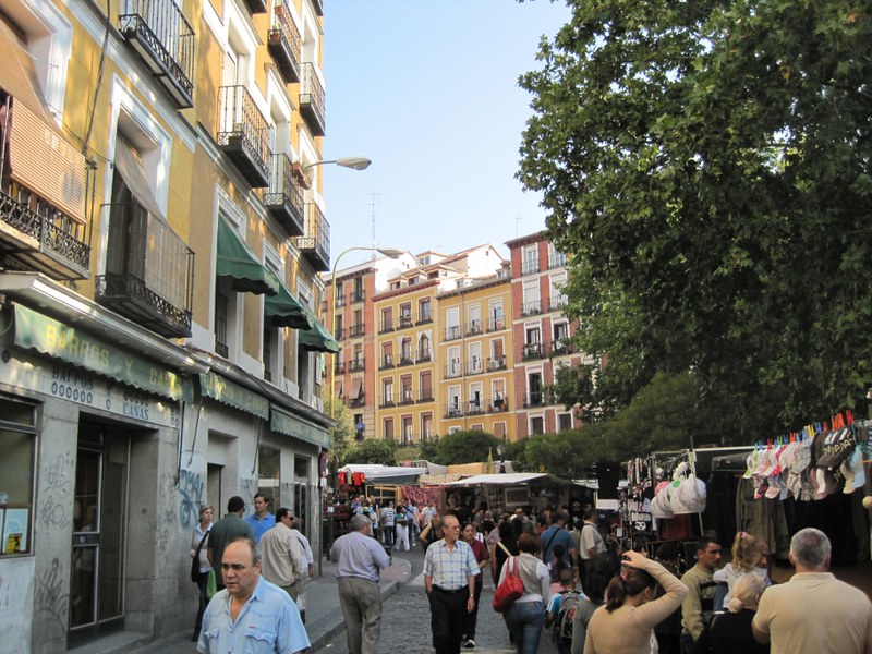 Um 9 Uhr dann standen also alle mehr oder weniger da und warteten auf neue Informationen. Zuerst gingen wir zum „Rastro“ dem berühmten Madrider Flohmarkt, der immer sonntags stattfindet. Dort gab es so ziemlich alles zu kaufen, wie zum Beispiel Schmuck, Kleider, Haushaltsutensilien, Essen, Elektronische Geräte und noch vieles mehr, auch Antiquitäten und modernere Artkikel. Einige von uns machten dort noch die letzten Einkäufe.