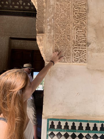 Nun ging es los zur Alhambra, eine bedeutende Stadtburg auf dem Sabikah-Hügel von Granada in Spanien. Dieser besteht aus einer Zitadelle (der Alcazaba), Nasridenpaläste (Palacios Nazaries) und dem Palast Karls der Fünfte. Zuerst besuchten wir die Zitadelle, wo wir eine atemberaubende Aussicht auf Granada hatten. Anschliessend besuchten wir die Nasridenpaläste mit Ihren wunderschönen Gärten und Brunnen. Dann besichtigten wir noch den Palast Karls der Fünfte und machten einige Klassenfotos. Der Besuch der Alhamba war grossartig. Was ich am beeindruckendsten fand, waren die Details an den Wänden der Nasridenpaläste. Auch die Gärten waren wunderschön und trotz der Hitze und dem vielen Laufen konnten wir den Besuch sehr geniessen.
