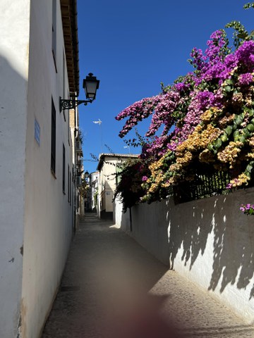Nachdem uns der Bus zum Mirador San Cristóbal brachte, schlenderten wir durch die Strassen des Albaicín, um schliesslich die Aussicht vom Mirador San Nicolás aus, geniessen zu können. El Albaicín, welches das älteste Stadtviertel Granadas ist, begeisterte uns mit seinen weissen Häusern, engen Gassen und kleinen Balkonen sehr. Es war nicht immer sehr einfach, die richtige Gasse zu finden, denn sie sahen sich alle sehr ähnlich. Vom Mirador San Nicolás aus, hatte man einen schönen Blick auf die Alhambra und die Sierra Nevada. Zwei Schülerinnen präsentierten anschliessend einige Informationen und die Geschichte des Viertels.