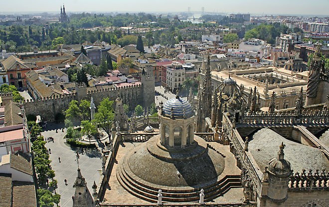 Am Freitag durften wir erstmal ein bisschen ausschlafen. Um 9:30 war Treffpunkt im Hotel. Danach besuchten wir den Alcázar, einen wunderschönen Palast, der von den Muslimen gebaut und dann von den Christen übernommen und erweitert wurde. Um 12:30 gingen wir in die Kathedrale, wo wir die Giralda, den berühmnten Turm, der einst das Minarett der dort befindlichen Moschee war, hinaufstiegen und einen herrlichen Ausblick auf Sevilla geniessen konnten. Später durften wir die Stadt auf eigene Faust erkunden. Um 14:30 trafen wir uns zu einem freiwilligen Spaziergang mit Herrn Pombo. Die schönste Sehenswürdigkeit war die Plaza de España, ein Ort, wo alle Provinzen Spaniens verewigt sind. Das Monument wurde übrigens 1929 anlässlich der Exposición Iberoamericana errichtet. Nach dieser Tour in der Hitze von Sevilla bei gut 37 Grad Celsius kehrten wir ins Hotel zurück und hatten Zeit, uns zu erholen, bevor wir ein Tablao Flamenco besuchten. Der Tag wurde mit einem gemeinsamen Abendessen und anschliessendem Drink beendet.