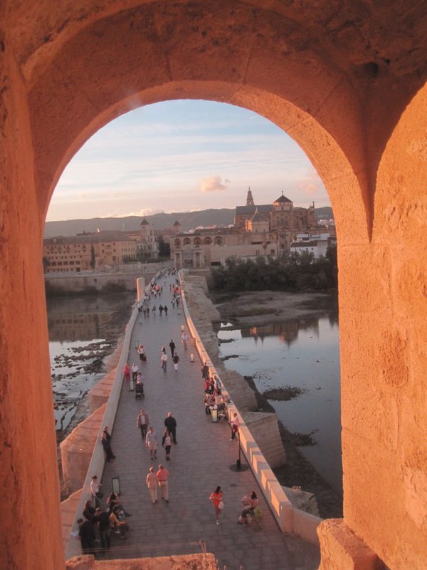 8 Uhr früh. Wir sitzen im Bus nach Córdoba. Alle schlafen, da wir schon um 06:30 Uhr aufstehen mussten. Um 11 Uhr kommen wir in Córdoba an. Es regnet in Strömen und alle rennen so schnell wie möglich zu ihren Taxis, die uns in die Albergue Juvenil bringen. Nachdem wir ausgepackt und uns bereit gemacht haben, stellt schon die nächste Person ihre Studienarbeit in einem 15-minütigen Vortrag vor. Dank Linda wissen wir nun das Wichtigste zu Córdobas Geschichte und können Quervergleiche zu den anderen Städten ziehen, die wir gesehen haben. So hat Córdoba auch verschiedene Epochen durchlebt und stand einst unter römischer, westgotischer und arabischer Herrschaft, während der es im X und XI Jahrhundert als Hauptstadt des Kalifats seine Blütezeit erlebte. Um 14:30 Uhr heisst es Versammlung vor der Mezquita-Catedral de Córdoba - bis dahin haben wir Zeit, zu Mittag zu essen und nach Belieben die Stadt zu erkundigen. Nach dem Mittagessen ist es soweit, Kristina enthüllt uns mit ihrem Vortrag spannende Einzelheiten über das imposante Bauwerk, das römische, maurische und christliche Baukunst vereint. Danach nimmt uns Luis mit auf einen Spaziergang durch die 17 noch existierenden Strassen der Judería, dem alten jüdischen Viertel Córdobas. Nach dem Besuch der nur 40 Quadratmeter messenden Sinagoge nimmt er uns mit in die atemberaubende Mezquita-Catedral. Wenn man in den Gebetsaal eintritt, bekommt man das Gefühl, in einem Wald von Säulen zu sein. Der orientalische Stil der Architektur zeigt eindeutig, dass das arabische Volk seine Spuren hinterlassen hat. Nach gut 2 1/2 Stunden beendet der Luis mit einem letzten «Bueno, bueno, bueno» zum Bedauern aller bereits seine Führung und wir werden für die nächste Stunde freigestellt. Um 18:00 treffen wir uns bei dem Monument San Rafael - so heisst übrigens der Schutzheilige Córdobas - um mehr über die arabische Architektur zu erfahren, welche Spanien sehr prägt. Dieses Thema wird von Nina und Doris in äusserst anschaulicher Weise präsentiert. Bevor wir in das Museo vivo de Al-Ándalus gehen, schiessen wir noch ein paar tolle Klassenfotos zur Erinnerung an unsere Studienreise. Beim Überqueren der Brücke mit Namen El Puente Romano wird uns nochmals bewusst, dass die Geschichte der Stadt anhand ihrer Bauten direkt greifbar ist. Auf dem Turm des Museums können wir eine wunderbare Aussicht auf ganz Córdoba geniessen.