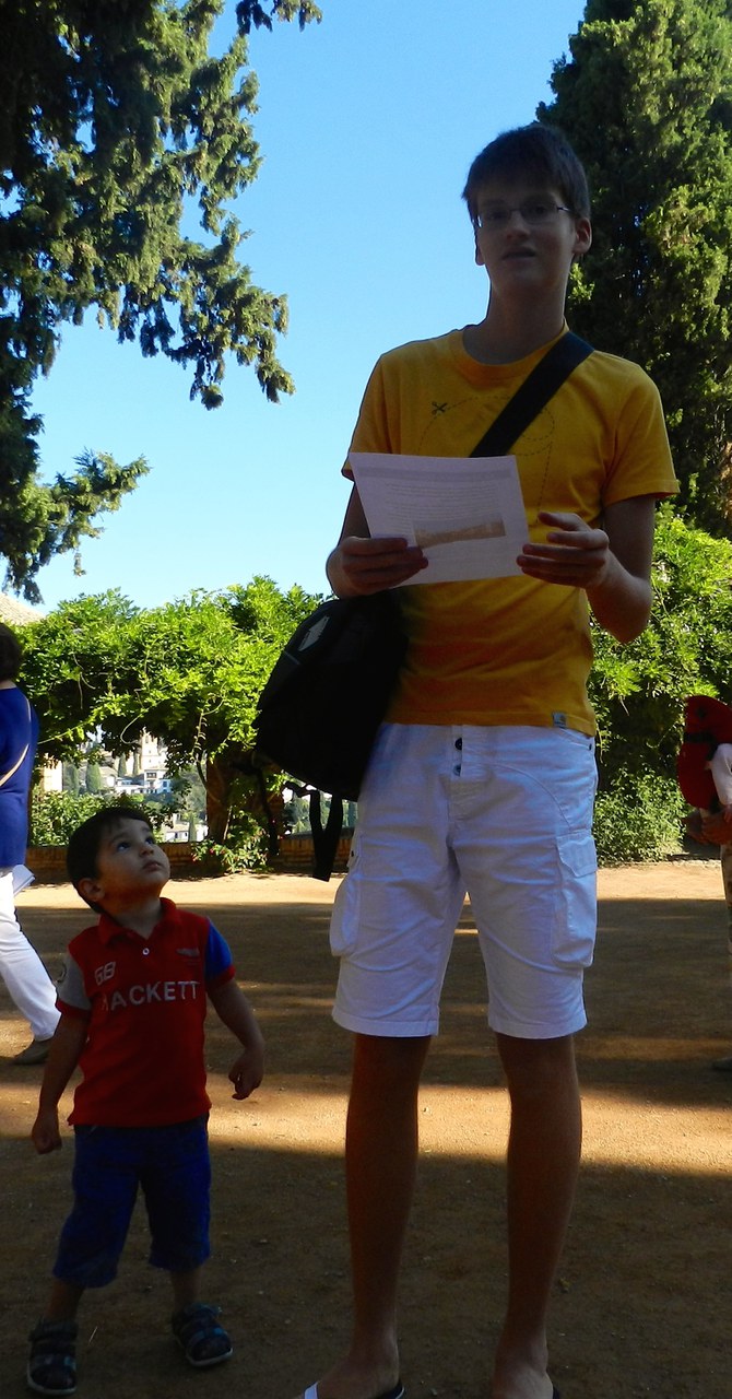 Am Samstagmorgen kurz nach 10 Uhr trafen sich die beiden Klassen von Frau López und Frau Hernández bei Gleis 8 am Bahnhof SBB. Es dauerte nur wenige Minuten, bis das erste Unglück über uns kam. Am Bahnhof war der Koffer eines Schülers spurlos verschwunden. Da die Zeit nicht mehr reichte, um neue Kleider zu holen, wurde der Vater der betroffenen Person nach Zürich bestellt, um einen Ersatzkoffer mit den wichtigsten Utensilien zu bringen. Fünf Tage später wurde der Koffer dann in Basel aufgefunden; es fehlten lediglich zwei paar Hosen, ein paar Schuhe und die Zahnbürste. Zurück zur Reise. Nach einer unterhaltsamen und lustigen Zugfahrt nach Zürich konnte man einige freien Minuten am Flughafen geniessen. Dann folgte der Flug nach Málaga, Ausgangspunkt der Reise. Dort angekommen, gelangten wir durch eine Unterführung bis zum Busbahnhof, wo wir den Bus Nummer 41 in Richtung Granada nahmen. Die Fahrt wurde über das Autoradio teilweise von alten Klassikern begleitet und dauerte etwa zweieinhalb Stunden. In Granada bezogen wir als erstes unsere Hotelzimmer, ehe wir zusammen in die Stadt gingen. Auf diesem Weg zeigten uns die Lehrpersonen Strassen, in welchen man zum Entdecken guter Restaurants geeignet waren. Wenig später fanden wir uns alle, ein paar hier, ein paar dort, in einer guten "Beiz" wieder. Um 23.30 Uhr sollte man spätestens ins Hotel zurückgekehrt sein, was gut klappte. Mit der Zimmerruhe war der Samstag auch schon Geschichte.