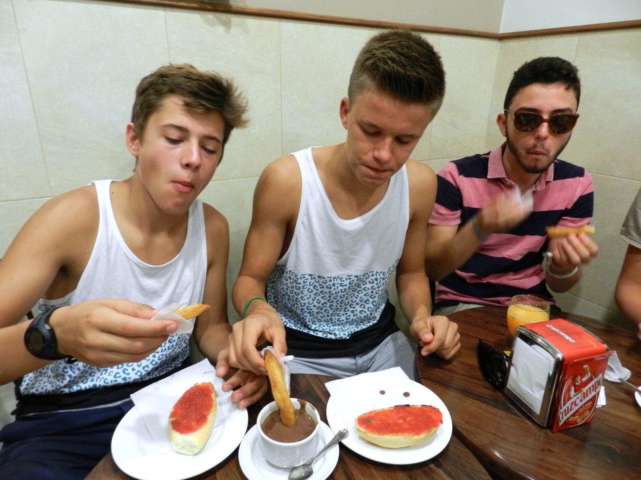 Am Abend stand das Flamenco-Museum auf dem Programm. Wir wurden von einem netten Herrn durch die Ausstellung geführt. Er erklärte uns die verschiedenen Stile des Flamencos, sprach von berühmten Tänzerinnen und Tänzern und beschrieb, wie sich die Kleidung des Flamencos entwickelt hatte. Nach der Führung gab es eine einstündige Flamencoaufführung. Alle waren begeistert von der guten Darbietung der Tänzer, des Sängers und des Gitarristen. Nach der Flamencoaufführung wurden wir von Frau López und Frau Hernández in ein schönes kleines Restaurant eingeladen, in dem wir alle zusammen uns den Bauch mit Tapas vollschlugen. Es war ein sehr schöner und familiärer Abend. Nach dem Abendessen konnten wir nochmals in die Stadt gehen, aber wie immer mussten wir um 23.30 zuhause sein.