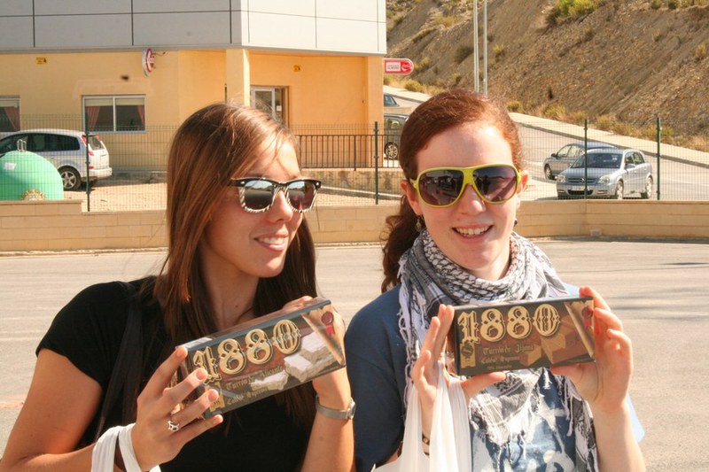 Der Fabrikladen wird gleich gestürmt und ein paar Schülerinnen bewerben sich in situ für die Werbeabteilung von “Turrones 1860/El lobo”.