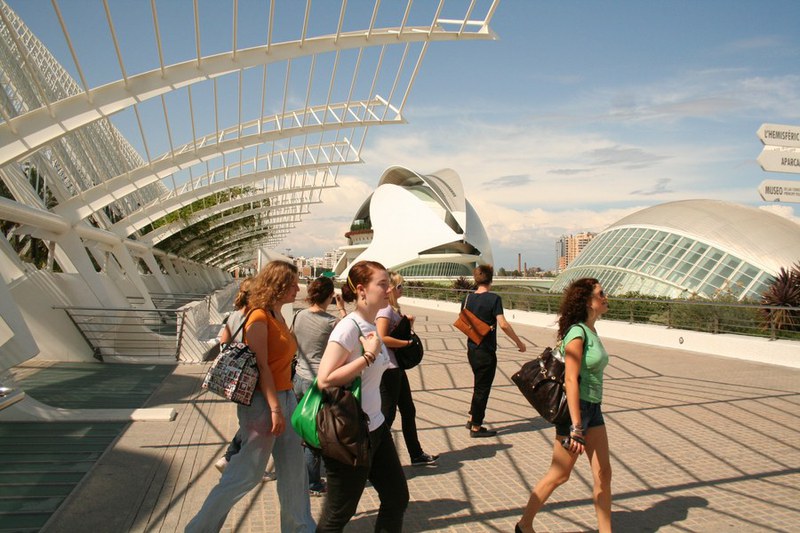 Dienstag 17:00 Zurück in Valencia und im alten Flussbett des Turia. Galía klärt uns über das Phänomen Tourismus in Spanien auf.