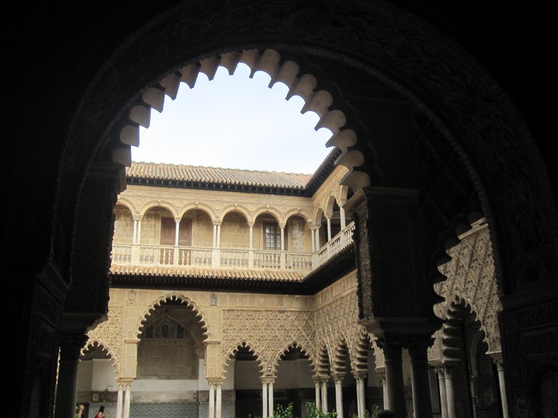 besichtigten wir den Real Alcázar von Sevilla, ursprünglich ein Palast der arabischen Herrscher, der über die Jahrhundert mehrfach Veränderungen und Erweiterungen erfuhr. Heute dient der Alcázar, der vor allem durch seine Ästhetik und seine gehaltvolle (Bau)geschichte besticht, als eine der touristischen Hauptattraktionen Sevillas und wenn die spanische Königsfamilie in der Stadt ist als deren Residenz. Paulina Kliems Führung durch den Alcázar war so gut, dass sich mehrer Touristen unter unsere Gruppe mischten und eine lokale Touristenführerin ihr das Vortragen verbieten wollte.