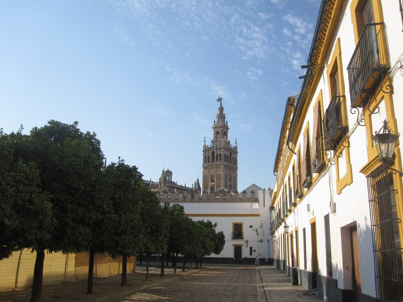 unter der Leitung von Rahel (aka Raquel), die uns über die wichtigsten Aspekte des riesigen Monuments aufklärte. Wir erklommen sogar die Giralda, den 98 Meter hohen Turm, der uns eine wunderschöne Aussicht auf die ciudad bot. Anschliessend besuchten wir das Archivo de Indias, von dem uns Natalie erzählte, ergänzt von einem Guide, der uns durch das ganze Bauwerk führte, in dem viele Details über den Handel mit Südamerika (las Indias) schriftlich festgehalten wurde.