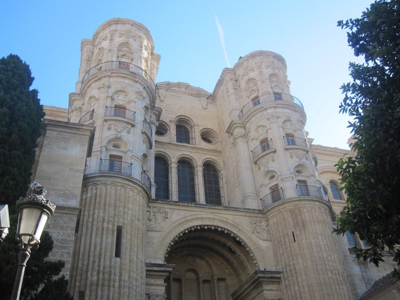 Am 24. September besammelten wir uns alle rechtzeitig am Euroairport und nachdem alle da waren gingen wir direkt zur Gepäckaufgabe. Dort trafen wir die andere Spanischklasse an, die nach Madrid flog. Der zweieinhalbstündige Flug verging im Nu, und wir landeten im „Aeropuerto de Málaga“, einigen auch bekannt als Mágala ;-). Dort nahmen wir den Bus Richung Hotel und bekamen einen ersten Eindruck der Stadt, die auf den ersten Blick nicht ihre ganze Pracht offenbart. Nach der halbstündigen Fahrt und kurzer Suche nach dem Hotel, stellten wir unser Gepäck in die Zimmer und machten uns auf den Weg zum Restaurant, das Herr Larghi für das gemeinsame Abendessen ausgesucht hatte. Die Mahlzeit erfüllte den Zweck uns zu sättigen. Beim anschliessenden Rundgang durch die Innenstadt, die  sehr schön erhalten und gepflegt ist, warfen wir, unter anderem, einen Blick auf die Catedral de Málaga und Alice verriet uns bereits erste spannende Details zu diesem Bau, den die malagueños liebevoll „La manquita“ (die Einarmige) nennen, da von den zwei geplanten Türmen nur der eine fertig gestellt wurde.