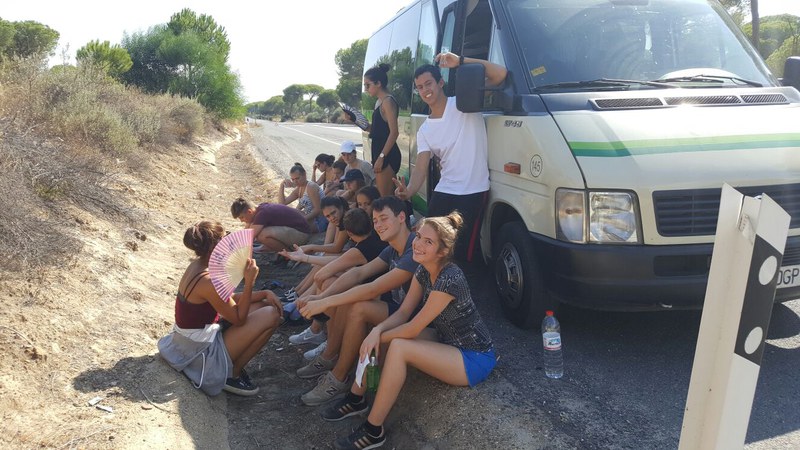 Die Exkursion in den Nationalpark Coto de Doñana, welcher anderthalb Stunden Sevilla entfernt ist, begeisterte uns durch die atemberaubende Landschaft dieses Parks. Wir machten eine ausgedehnte Bustour durch den 543 km2 grossen Park und bekamen dabei Ferngläser, um die Tiere besser beobachten zu können. Nebst Wildschweinen, Hirschen und Hasen bekamen wir auch Luchsspuren zu sehen, welche wir unter Anleitung unserer beiden Begleitpersonen analysieren konnten. Vor der Rückkehr nach Sevilla gab es im Pilgerort El Rocío ein exquisites Mittagessen. Auf dem Weg nach Sevilla geschah etwas Unerwartetes: Unser Bus blieb plötzlich stehen, und wir mussten am Rand der Autobahn zwei Stunden in der prallen Sonne auf einen Ersatzbus warten. Als der Ersatzbus dann endlich kam, freuten wir uns alle.