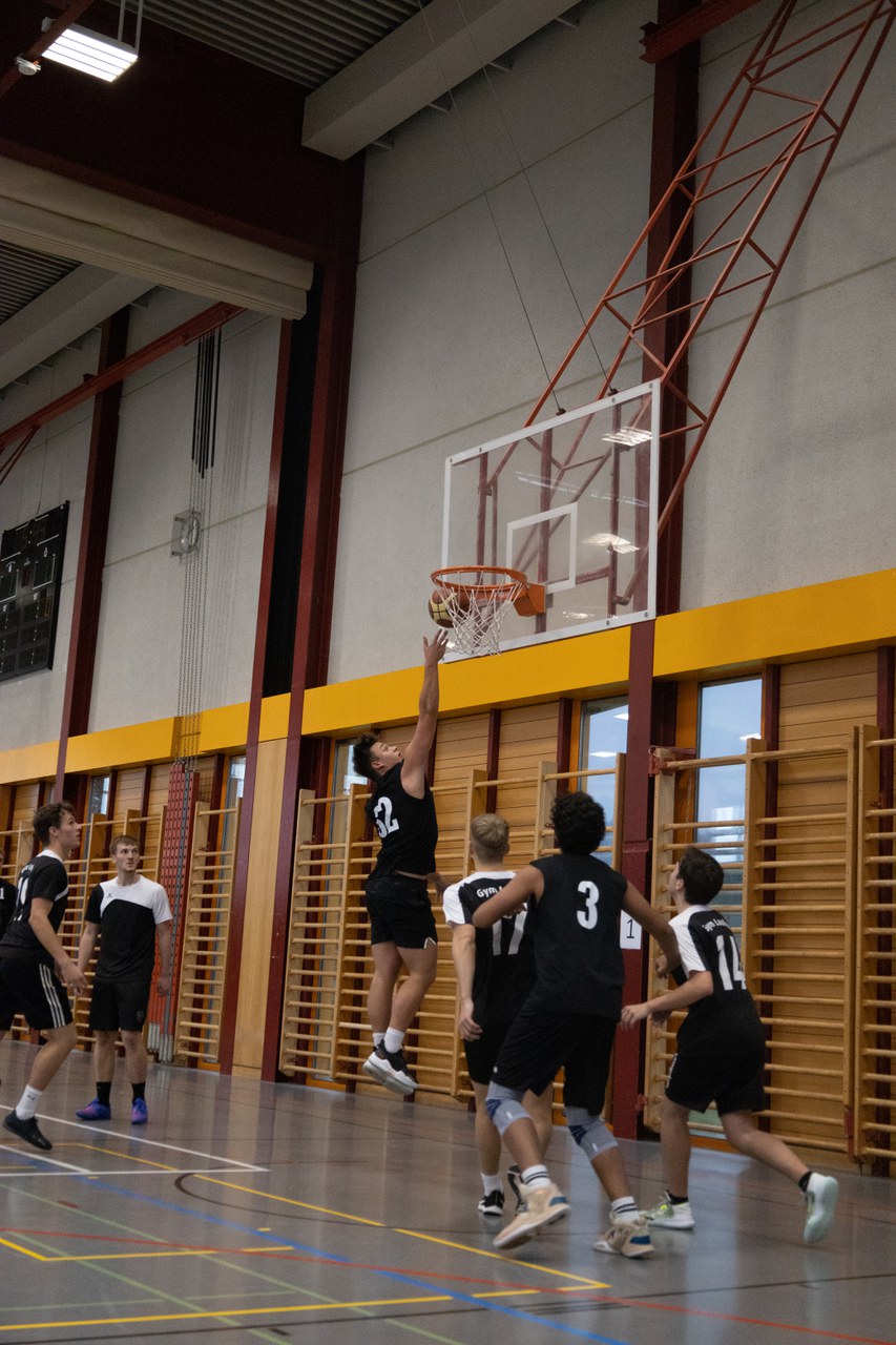 Unser GM-Team hat sich gestern an den Basketball Schülermeisterschaften der Kantone BS und BL sehr wacker geschlagen und den guten 5. Rang erreicht. In der Vorrunde konnten wir zweimal gewinnen, gegen die FMS Basel und das Gymnasium Laufen. Gegen das Gymnasium Münchenstein und das Gymnasium Muttenz hatte unser Team das Nachsehen hatte und so verpasste es als Gruppendritter knapp das Halbfinale.