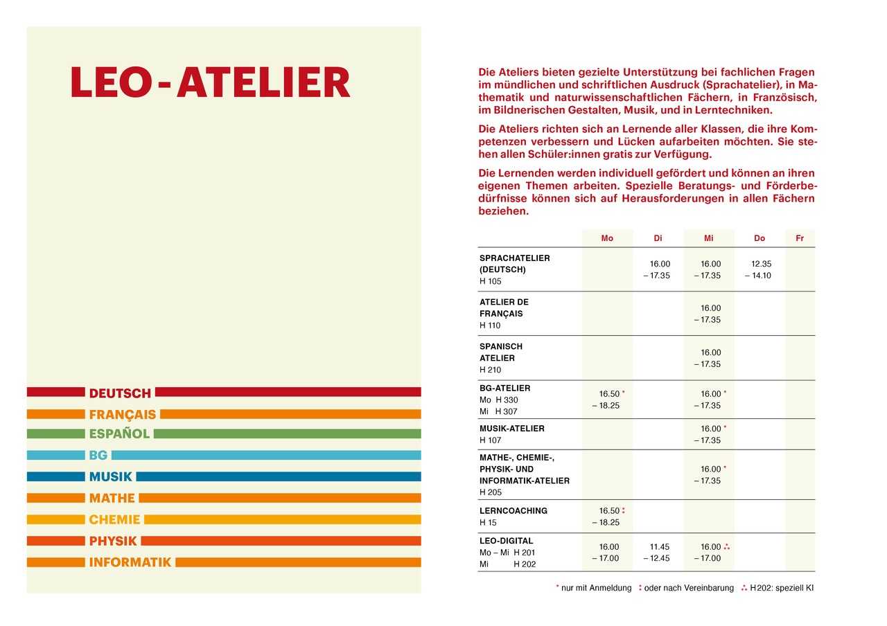 Dokumente mit weiterführenden Informationen zu den einzelnen Ateliers finden sie HIER.