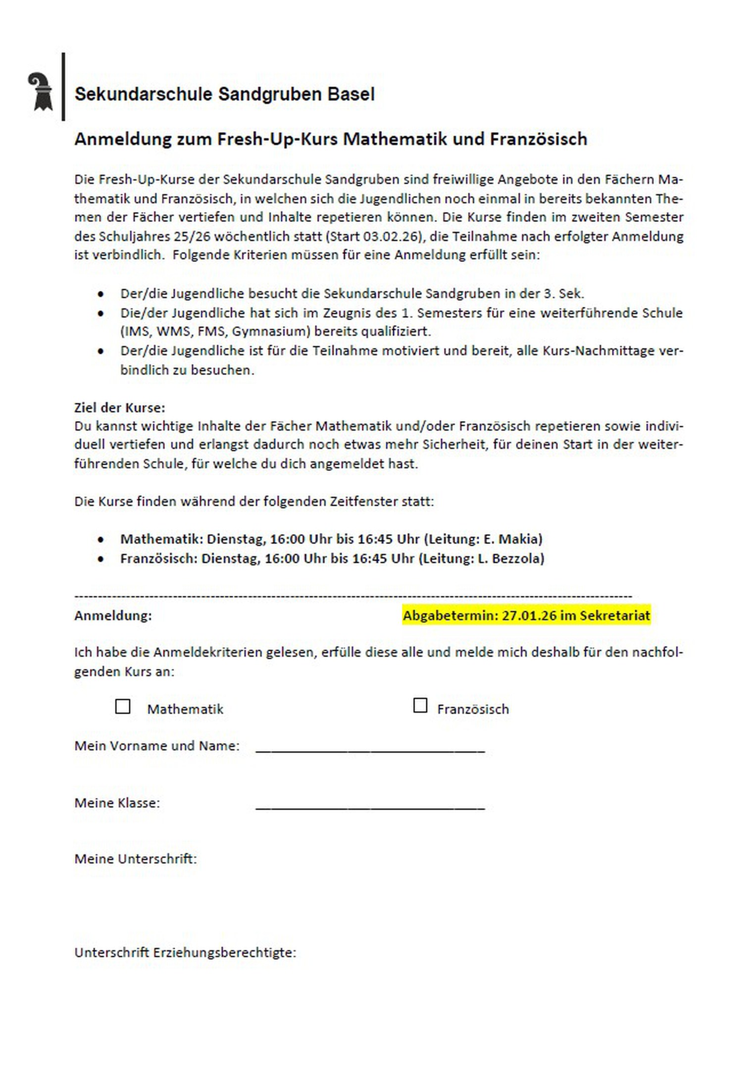 Fresh Up Kurse Mathematik und Französisch - Jetzt anmelden!